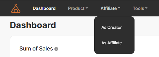 Login ke akun kamu di https://creator.tribelio.com, kemudian pilih menu affiliate dan As creator
